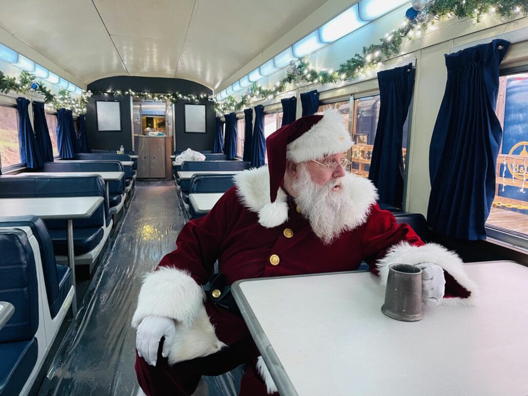 Enjoy festive table service with milk and Mrs. Claus’s cookies, plus cocoa and cider available onboard. The mood feels like an old-fashioned Christmas Eve supper on rails.